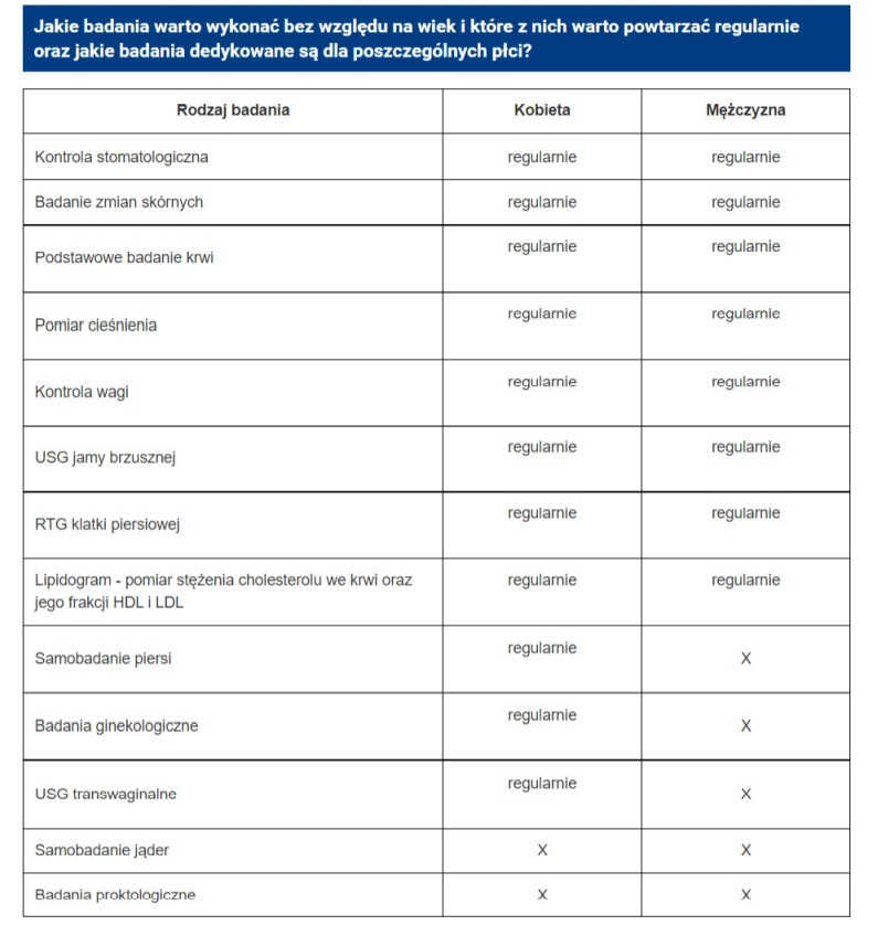 Czy możemy spróbować ułożyć podsumowanie, checklistę; jakie badania warto wykonać bez względu na wiek i które z nich warto powtarzać regularnie oraz jakie badania dedykowane są dla poszczególnych grup wiekowych i w podziale na płeć?