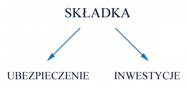 Wpłacona składka dzielona jest na dwie części. Jedna część przeznaczana jest na inwestycję, a druga na ochronę ubezpieczeniową.