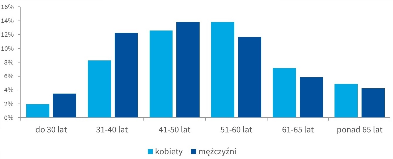 Rozkład wiekowy osób oszczędzających na IKZE w 2021 r.